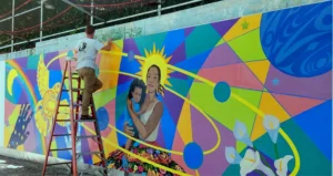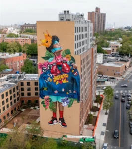 In addition to our temporary, construction-based installations, we also produce permanent murals in partnership with site owners, city agencies, nonprofits, and real estate developers. As with all of our projects, our approach is framed around creating value for the communities in which we work — employing local artists who can amplify the voices, histories, cultures, and talents of those communities. If you are interested in working with us, email exchange@art-bridge.org
